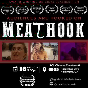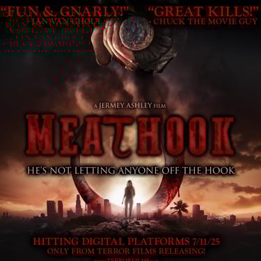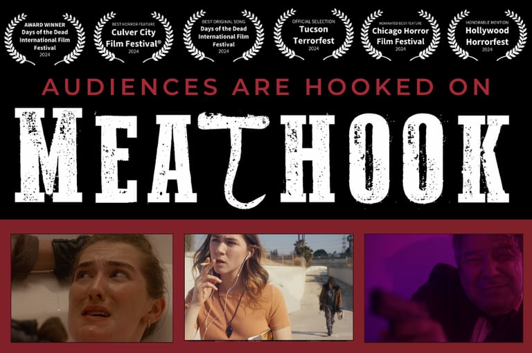 Part homage to the slasher sub-genre, part deconstruction, Meathook walks the fine line between thrilling slasher and meta-comedy. It's a quirky, low-budget love child of Scream, Cabin in the Woods, and I Know What You Did Last Summer, with a dash of the offbeat zaniness of Young Frankenstein.